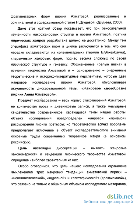 фрагментарных форм лирики Ахматовой, реализованные в оригинальной и содержательной статье Н.Дзуцевой (Дзуцева, 2000).