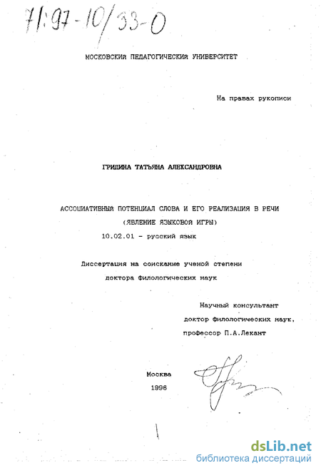 Апробация исс-лепования. Основные теоретические положения работы изложены Е научных статьях и двух монографиях: по теме диссертации разработаны и прочитаны в вузе Ґ1989-1993) два спецкурса, материалы исследования неоднократно обсуждались на научном семинаре и заседаниях кафедры современного русского языка МПУ, на семинаре ло проблемам мотивологии УрГУ; автор выступал с докладами на многих научных конференциях, в том числе на международных: в С.-Петербурге ҐІ993), Екатеринбурге (1995, 1996), Ялте (1995); на X и XI Всесоюзных симпозиумах по психолингвистике и теории коммуникации (Москва, 1991, 1994).