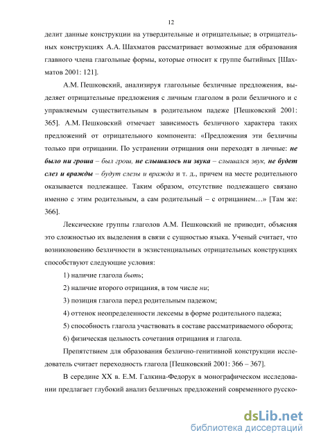Глава 1. Синтаксический статус безлично-генитивных предложенийв современном русском языке .11