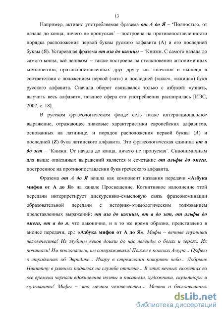 В русском фразеологическом фонде есть также интернациональное выражение, отражающее знаковые характеристики европейских алфавитов, основанных на латинице, и порядок расположения первой буквы (А) и последней (Z) букв латинского алфавита. Это фразеологическая единица от а до зет - Книжн. От начала до конца, ничего не пропуская . Синонимичным для выше описанных выражений является и сочетание от альфы до омеги, построенное на противопоставлении букв греческого алфавита.
