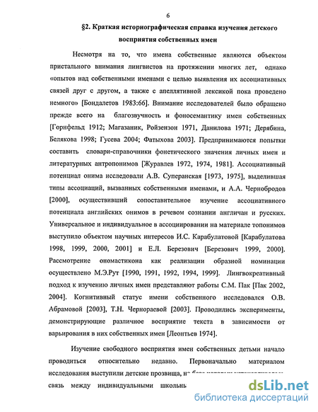 Несмотря на то, что имена собственные являются объектом пристального внимания лингвистов на протяжении многих лет, однако «опытов над собственными именами с целью выявления их ассоциативных связей друг с другом, а также с апеллятивной лексикой пока проведено немного» [Бондалетов 1983:66]. Внимание исследователей было обращено прежде всего на благозвучность и фоносемантику имен собственных [Горнфельд 1912; Магазаник, Ройзензон 1971, Данилова 1971; Дерябина, Белякова 1998; Гусева 2004; Фатыхова 2003]. Предпринимаются попытки составить словари-справочники фонетического значения личных имен и литературных антропонимов [Журавлев 1972, 1974, 1981]. Ассоциативный потенциал онима исследовали А.В. Суперанская [1973, 1975], выделившая типы ассоциаций, вызванных собственными именами, и А.А. Чернобродов [2000], осуществивший сопоставительное изучение ассоциативного потенциала английских онимов в речевом сознании англичан и русских. Универсальное и индивидуальное в ассоциировании на материале топонимов выступило объектом научных интересов И.С. Карабулатовой [Карабулатова 1998, 1999, 2000, 2001] и Е.Л. Березович [Березович 1999, 2000]. Рассмотрение ономастикона как реализации образной номинации осуществлено М.Э.Рут [1990, 1991, 1992, 1994, 1999]. Лингвокреативный подход к изучению личных имен представляют работы СМ. Пак [Пак 2002, 2004]. Когнитивный статус имени собственного исследовался О.В. Абрамовой [2003], Т.Н. Чернораевой [2003]. Проводились эксперименты, демонстрирующие различное восприятие текста в зависимости от варьирования в них собственных имен [Леонтьев 1974].