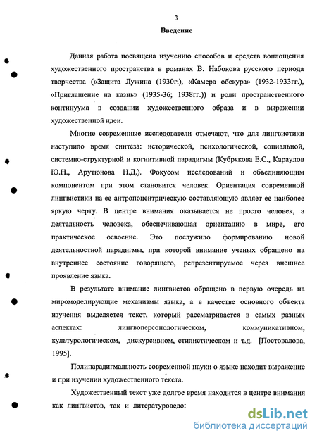 13 творчества Набокова обращались и многие отечественные литературоведы (А. Долинин, Б. Аверин, В. Ерофеев, О. Сконечная и др.). Но о существовании специальных лингвистических работ, посвященных исследованию языкового моделирования пространства в текстах В. Набокова, нам не известно. В этом отношении детально изученным является только один из романов - «Дар», а также некоторые рассказы.