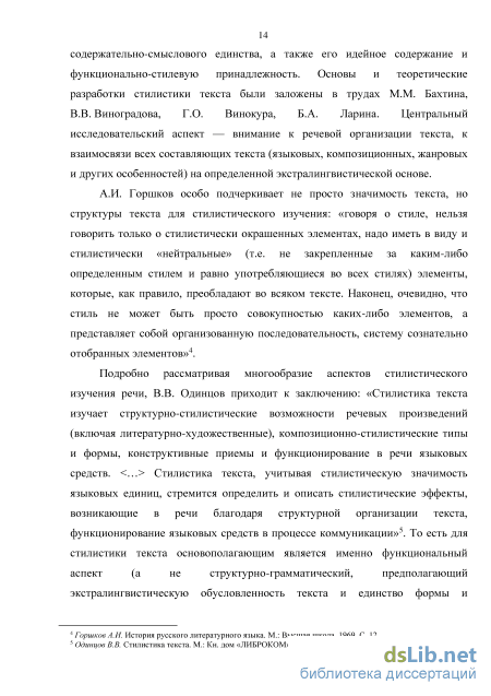 А.И. Горшкова, М.В. Ивановой, В.Г. Костомарова, а также труды М.М. Бахтина, В.П. Григорьева и Б.А. Успенского. Методологической основой послужили позиции виноградовской научной школы изучения языка художественной литературы и стилистики текста.