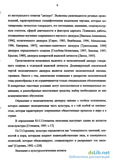 Обращение к экономическому дискурсу связано с особым положением, которое занимает экономическая часть культуры, и с той особой ее значимостью, которая характеризует современные общественные процессы в мире и в стране.