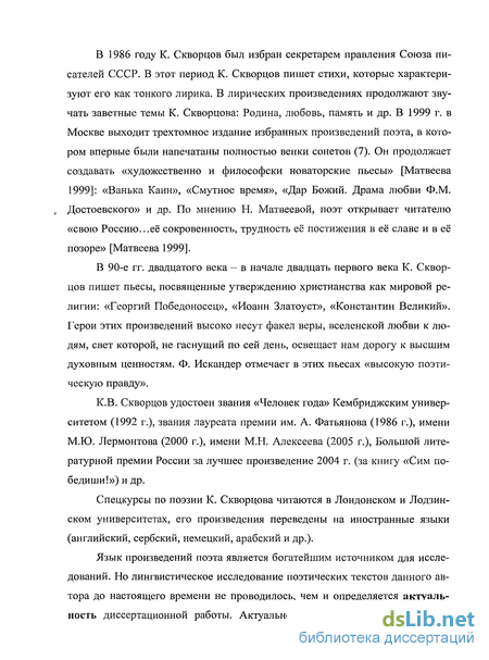 Объект исследования. Объектом исследования послужили тексты лирических произведений К. Скворцова, представленные в следующих изданиях: 1) К. Скворцов. Избранные произведения. В 3 т. - М.: Русская книга, 1999; 2) К. Скворцов. Берег милый. Лирика. - Челябинск: Взгляд, 2003; 3) К.