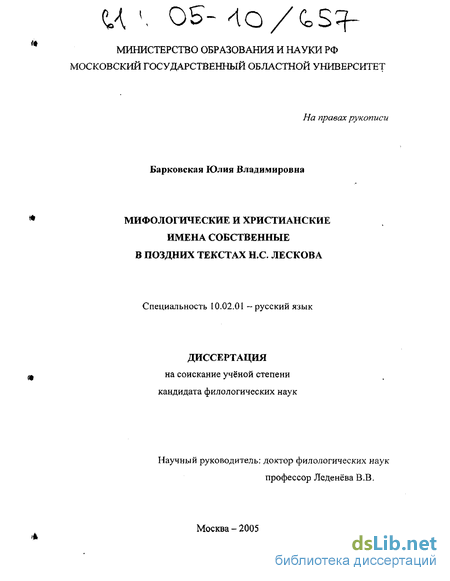 1. О составе христианских и мифологических имен в поздних текстах Н.С.Лескова 73
