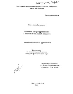 Цель диссертационной работы заключается в выявлении и анализе лексических экспликаторов понятия «наивное литературоведение», определении их места в лексиконе современной языковой личности.