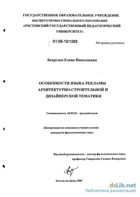 как А.Н. Баранова, Е.Г. Борисова, Л.Э. Левит, П.Б. Паршин, Ю.К. Пирогова, (имплицитная информация в рекламе), Е.Е.Корнилова (особенности языка телерекламы), С. Ильясова, Т.Н. Лифшиц, Е.Г. Фещенко, Е.Б. Курганова (игровой аспект рекламы) и многих других. Изучением этой проблемы занимались также Н.Н. Кохтев, Д.Э. Розенталь, О.А. Дмитриев, Э.Г. Рябцева, Е.Ф. Тарасов. Однако до сих пор не было работ, в которых бы рассматривались языковые особенности рекламы отдельной категории товаров и услуг, в частности рекламы архитектурно-строительной и дизайнерской деятельности.