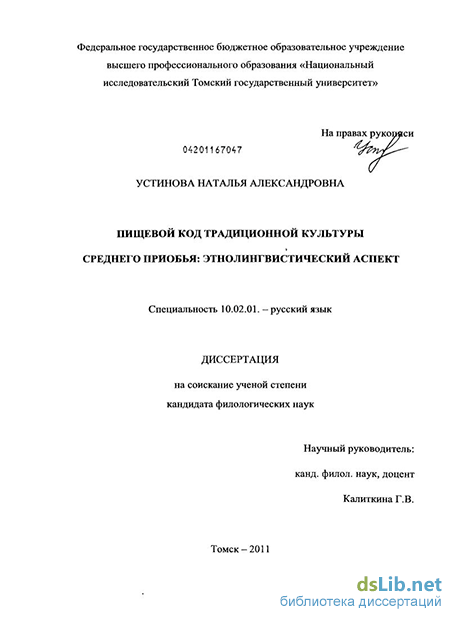 Реферируемая диссертационная работа создана в рамках этнолингвистики.
