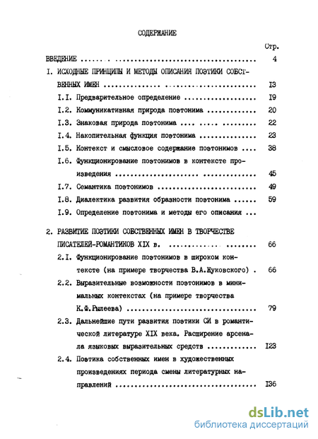 Перечисленные цели и задачи определили структуру работы. Первая глава посвящена исходным принципам и методам описания. В ней рассмотрены методологические предпосылки, оказавшие влияние на приемы и процедуры ономапоэтического исследования, дано новое понимание коммуникативной и знаковой природы поэтонима, описана накопительная функция, влияние жанра и эстетических установок литературного течения, охарактеризована семантика и диалектика образности, дана классификация поэтонимов. Во второй главе "Вклад писателей-романтиков в развитие поэтики собственных имен* на примере творчества В.А.Жуковского изучено функционирование поэтонимов в широком контексте. Выразительные возможности поэтонимов в минимальных контекстах исследовались на примере творчества представителя революционного романтизма К.Ф.Рылеева. Расширение арсенала языковых выразительных средств и дальнейшие пути развития поэтики СИ в романтической литературе описаны на материале творчества А.С.Пушкина. Третья глава "Поэтика собственных имен в произведениях романтического направления конца XIX - начала XX века", характеризуя романтические традиции и неоромантические тенденции поэтики СИ, в основном, посвящена фонетическим выразительным средствам, что логически завершает изучение поэтики СИ в соответствии с членимостью линейного дискурса на все более и бо-