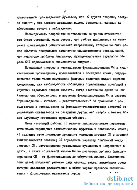 Поскольку в работе затронуты некоторые проблемы, по которым в науке не выработано общепризнанных взглядов, а также некоторые вопросы, до сих пор не ставшие предметом специальных разысканий в области ономапоэтики, мы стремились разобраться только в отдельных узловых проблемах современной ономапоэтики. Ограничения, указанные в заглавии, не означают, что СИ будут рассматриваться отвлеченно-лингвистически или только в границах условной хронологии романтизма.