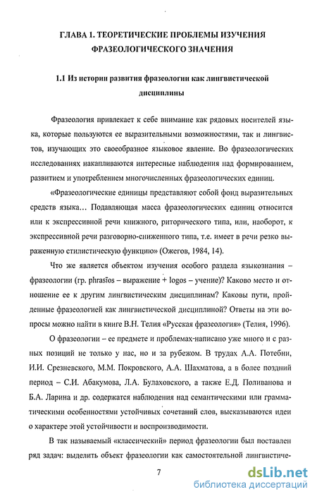 1.1 Из истории развития фразеологии как лингвистической дисциплины 7