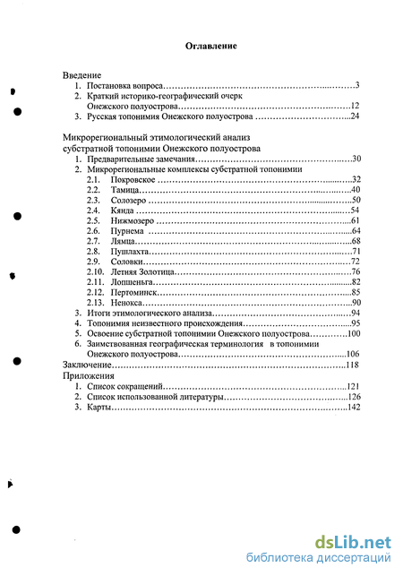 Диссертация состоит из введения (содержит постановку вопроса, описание источников работы, краткий историко-географический очерк Онежского полуострова, обзорное описание русской топонимии региона), основной части (посвящена этимологической интерпретации, некоторым вопросам адаптации и функционирования субстратной топонимии полуострова), заключения и приложения (в него входят список использованной литературы, список сокращений, карты).