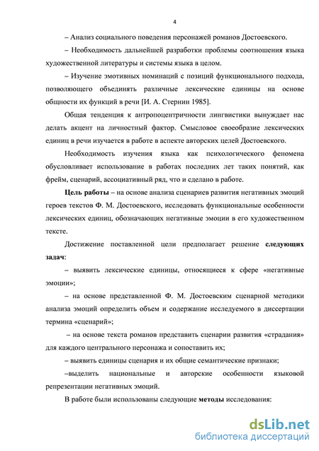 Основной акцент диссертации делается на сценарном подходе к изучению негативных эмоций персонажей художественного произведения, который может стать основой дальнейших исследований, в том числе изучения особенностей языка Ф. М. Достоевского как создателя оригинальных слов. Разумеется, проблема исследования эмоциональной сферы человека в художественном тексте двух романов Ф. М. Достоевского далеко не исчерпана, как и проблема отображения эмоций художественными средствами языка, но доказана плодотворность подобных исследований.