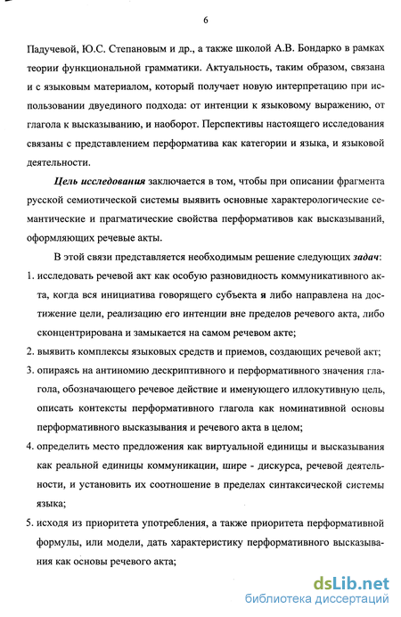 Цель исследования заключается в том, чтобы при описании фрагмента русской семиотической системы выявить основные характерологические семантические и прагматические свойства перформативов как высказываний, оформляющих речевые акты.