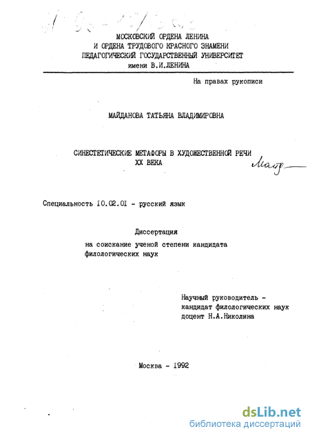 Синтез различных аспектов восприятия отражают синестетиче-ские метафоры, основанные на взаимодействии ощущений. В статьях Р.З.Миллер-Будницкой, Л.М.Грановской, Н.А.Кожевниковой, кандидатской диссертации С.Е.Караваевой и других работах рассматриваются отдельные виды таких метафор, их употребление некоторыми поэтами-(Ю.Балтрушайтис, А.Блок, А.Белый и др.). Были также исследованы синестетические метафоры, функционирующие в поэтическом языке 12 западноевропейских поэтов XIX в. (Ст.Ульман) и сделан вывод о том, что их развитие носит не случайный, а закономерный характер; намечены общие закономерности их существования в подъязыках искусствоведения (И.Н.1Ърелов).