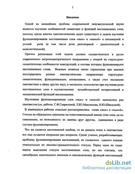 Одной из важнейших проблем современной лингвистической науки является изучение особенностей семантики и функций местоименных слов, поэтому среди многих лингвистических задач существует и задача изучения функционирования местоименных слов «так» и «такой» в письменной и устной речи (в том числе речи разговорной - диалогической и монологической).