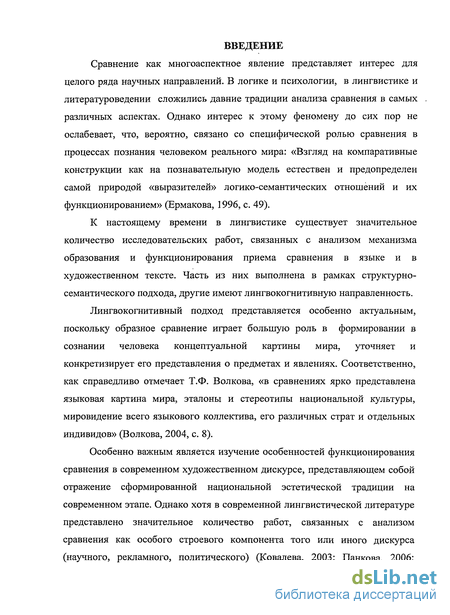 Особенно важным является изучение особенностей функционирования сравнения в современном художественном дискурсе, представляющем собой отражение сформированной национальной эстетической традиции на современном этапе. Однако хотя в современной лингвистической литературе представлено значительное количество работ, связанных с анализом сравнения как особого строевого компонента того или иного дискурса (научного, рекламного, политического) (Ковалева, 2003; Панкова, 2006;