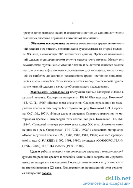 Глава II. Первичная номинация в тематической группе наименований одежды