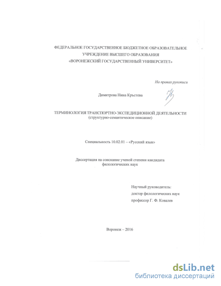 Предметом исследования являются структурно-семантические особенности транспортно-экспедиционных терминов.