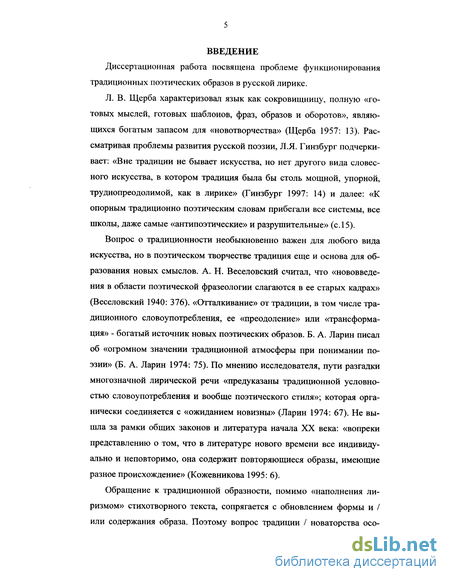В диссертации проанализировано свыше 900 контекстов употребления традиционных образов в русской лирике (более 800 из них приходится на долю исследуемых поэтов).