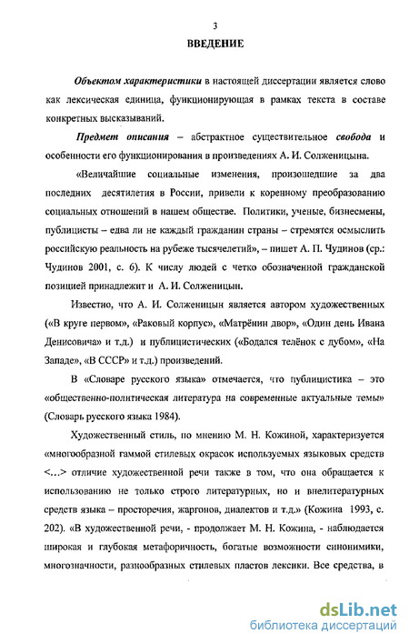 Цель диссертации - показать особенности функционирования в произведениях А. И. Солженицына существительного свобода, соотнеся авторское словоупотребление с общеязыковым, нормативным и продемонстрировав смысловой объём и семантические связи интересующего нас слова в художественных и публицистических текстах А. И. Солженицына.
