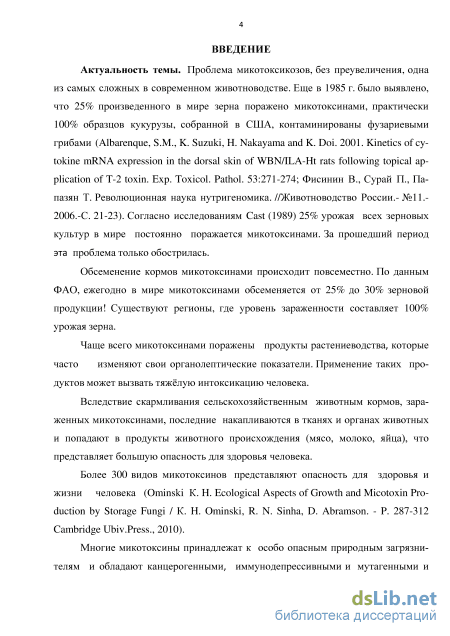 Однако, количество известных в настоящее время микотоксинов, которые могут принести ощутимый вред состоянию здоровья животных достаточно ограничено, т.к. несмотря на то, что многие метаболиты грибов потенциально токсичны, только некоторые из них способны влиять на организм животных в производственных условиях. Тем не менее результаты опытов на лабораторных животных, а также исследования in vitro подтверждают возможность негативного влияния микотоксинов на иммунную функцию (Bondy, G.S., Pestka. 2000. Immu-no-modulation by fungal toxins. Toxicol. Environ. Health (Part B) 3:109-143), они также способны снижать продуктивность сельскохозяйственных животных (Bail-ly, D., G. Benard, .Y. jouglar, S. Durand and P. Guerre. 2001. Toxicity of Fusarium monili-formeculture material containing known levels of fumonisin Bj in ducks. Toxi-col. 163:11-22).