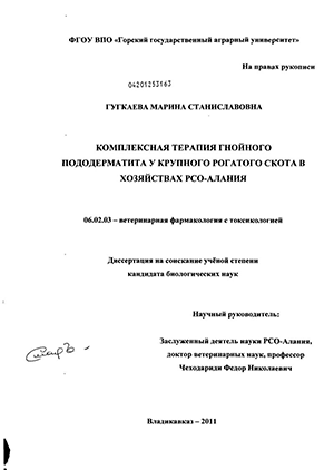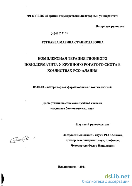 Цель и задачи исследований. Целью настоящей работы являлось разработка и совершенствование лечебно-профилактических мероприятий для повышения эффективности терапии при гнойном пододерматите копытец у крупного рогатого скота в хозяйствах РСО-Алания.