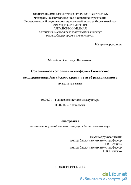 3.6. Характеристика современной ихтиофауны Гилёвского водохранилища Алтайского края 68