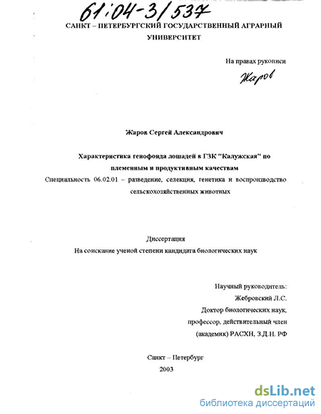 совершенствования пород сельскохозяйственных животных, направленные на сохранение и рациональное использование генофонда пород", а также является составной частью плана НИР СПбГАУ тема 9.1. Номер государственной регистрации 01940004225.
