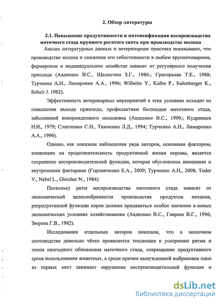 Анализ литературных данных и ветеринарная практика показывают, что производство молока и снижение его себестоимости в любом крупнотоварном, фермерском и индивидуальном хозяйстве зависит от регулярного получения приплода (Авдеенко B.C., Щелюгина З.Г., 1986.; Григорьева Т.Е., 1988; Турченко А.Н., Лимаренко А.А., 1996; Wilhelm Y., Kalbe P., Eulenberger К., SohuirJ. 1982).