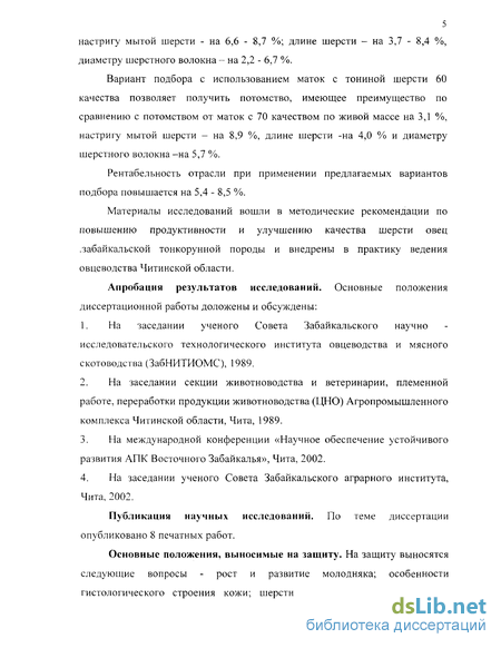 Основные положения, выносимые на защиту. На защиту выносятся следующие вопросы - рост и развитие молодняка; особенности гистологического строения кожи; шерстная продуктивность и физико-
