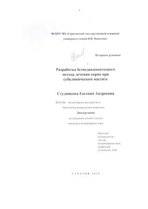 Значительно меньше работ посвящено разработке безмедикаментозных методов лечения и профилактики маститов у коров, что и определило выбор темы диссертационной работы.