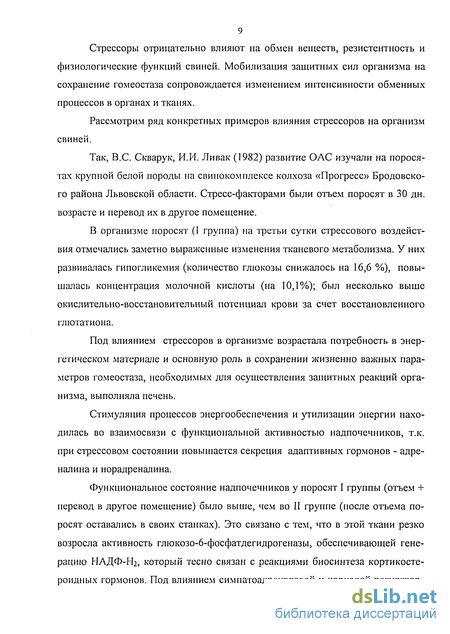 Стрессоры отрицательно влияют на обмен веществ, резистентность и физиологические функций свиней. Мобилизация защитных сил организма на сохранение гомеостаза сопровождается изменением интенсивности обменных процессов в органах и тканях.