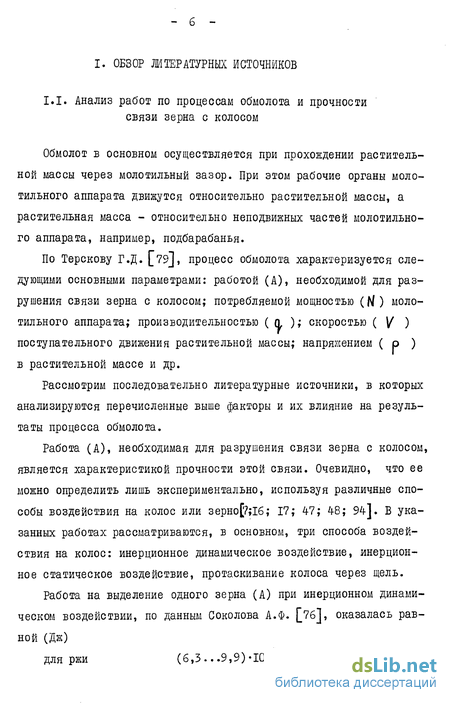 1.1. Анализ работ по процессам обмолота и прочности связи зерна с колосом . 6
