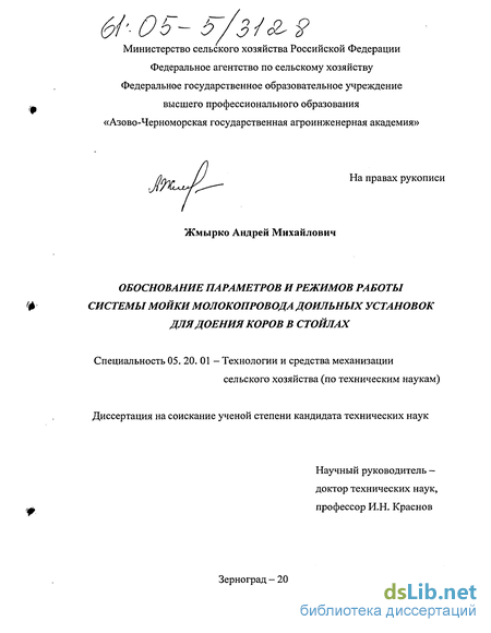 4.7. Обоснование режимов очистки молокопровода от загрязнений 117