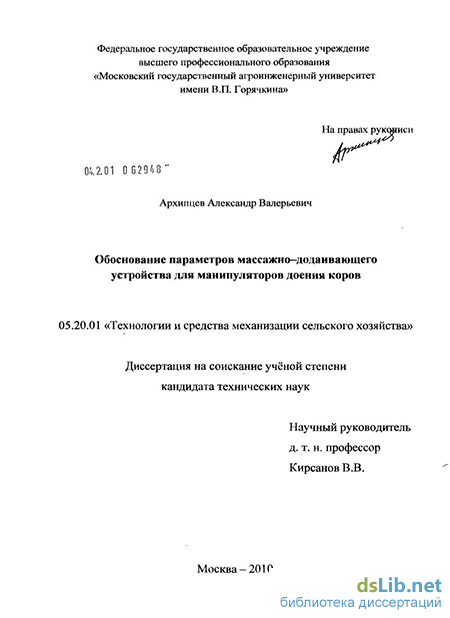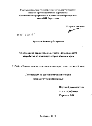 Реализация результатов исследований. Разработанное массаж-но-додаивающее устройство для манипуляторов доения коров прошло производственную проверку на доильной установке с молокопроводом на молочной ферме зоостанции РГАУ-МСХА имени К.А. Тимирязева, результаты исследований переданы НПП «Фемакс» для освоения в производстве.