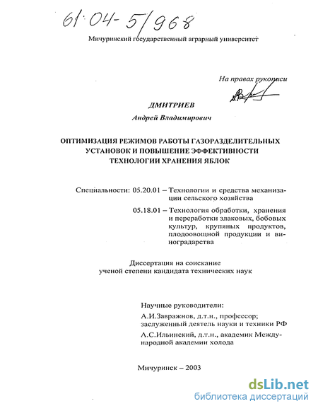 Эффективность технологии хранения в РА во многом определяется технологическими и техническими решениями оборудования для формирования и поддержания заданных газовых режимов в камерах холодильника. Исследованиями по созданию и обоснованию режимов эксплуатации такого оборудования занимались отечественные исследователи: Семашко В.Я., Тяжко-роб А.Т., Чекалов Л.Н., Харитонов В.П., Иванов С.А., Серебряков В.Н., Ильинский А.С, а также зарубежные: Marcellin P.J., Bartsch J.A., Malcom G.L., Bishop D.J., D'Amigo J., Henry W.P. et.al. За последние годы достигнуты значительные успехи в этой области. Так, для формирования газовых сред разработаны экологически безопасные газоразделительные установки, получающие азот из атмосферного воздуха путём молекулярного разделения с использованием мембранной или адсорбционной технологий. Однако научно обоснованных методов подбора и эксплуатации этих дорогостоящих установок до сих пор не разработано.
