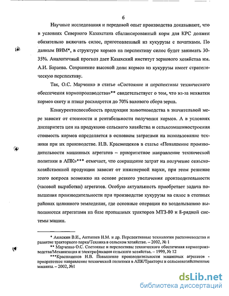 Так, О. С. Марченко в статье «Состояние и перспективы технического обеспечения кормопроизводства»** свидетельствует о том, что из-за нехватки кормов скоту и птице расходуется до 70% валового сбора зерна.