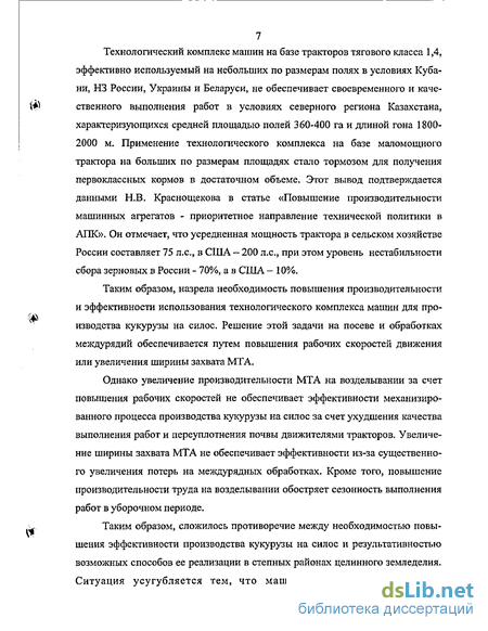 В связи с этим изыскание технологических и технических решений повышения эффективности механизированного процесса производства кукурузы на силос в степных районах целинного земледелия является актуальной проблемой, вытекающей из потребности сельскохозяйственного производства.