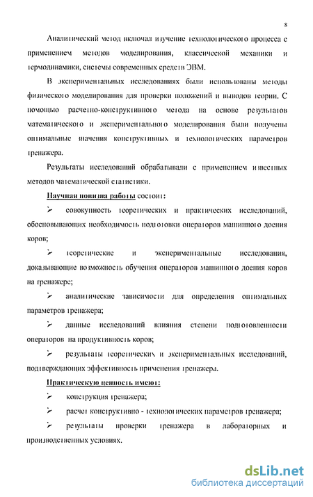 теоретические и экспериментальные исследования, доказывающие возможность обучения операторов машинного доения коров на тренажере;