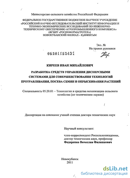 Цель работы. Разработать методы и средства управления дисперсными системами для совершенствования технологий протравливания, посева семян и опрыскивания растений при возделывании сельскохозяйственных культур.