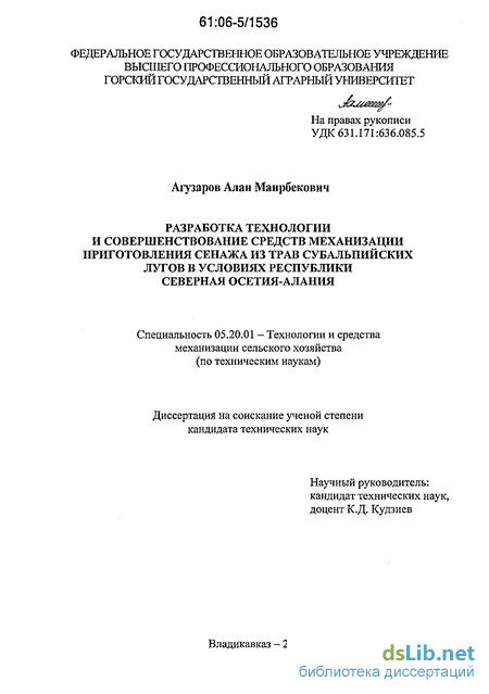технологическими и конструктивно-техническими решениями приготовления сенажа, нашедшими применение в крестьянских и фермерских хозяйствах горной зоны РСО-Алания.