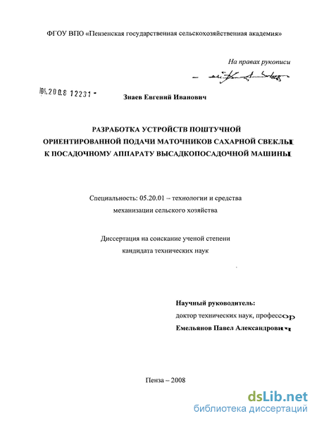 ПРЕДМЕТ ИССЛЕДОВАНИЙ- закономерности, режимы и показатели качества работы устройств поштучной ориентированной подачи маточников сахарной свеклы к посадочному аппарату высадкопосадочнои машины.