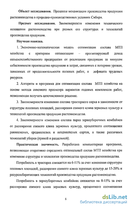 Предмет исследования. Закономерности изменения технического оснащения растениеводства при разных его структурах и технологий производства продукции. Научная новизна.