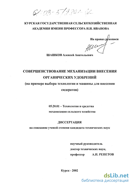 Исследования по теме выполнялись в 1999-2002 гг., входили в план исследований Курской государственной сельскохозяйственной академии им. профессора И.И. Иванова (тема № 11, номер государственной регистрации 01.9.20.006402) и соответствуют специальности 05.20.01 "Технологии и средства механизации сельского хозяйства".