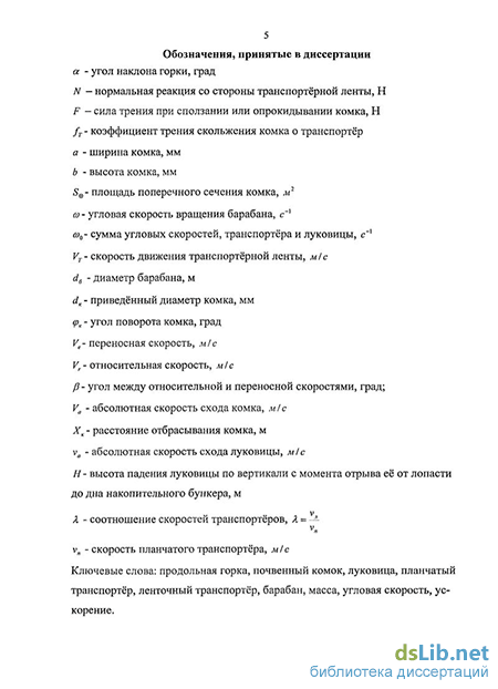 - Определение скорости схода комьев с ленточного транспортёра
