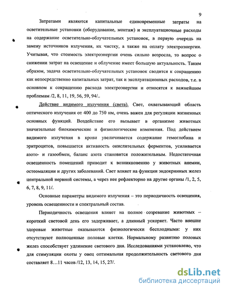 Глава 1. Состояние вопроса по освещению животноводческих помещений 8