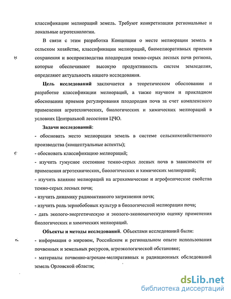 Цель исследований заключается в теоретическом обосновании и разработке классификации мелиорации, а также научном и прикладном обосновании приемов регулирования плодородия почв за счет комплексного применения агротехнических, биологических и химических мелиорации в условиях Центральной лесостепи ЦЧО.