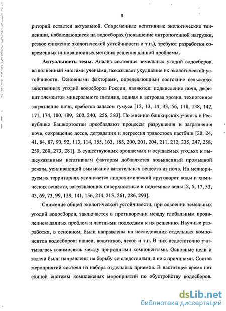 Предмет исследований – система комплексного обустройства, ее влияние на экологическую устойчивость и продуктивность водосборов.